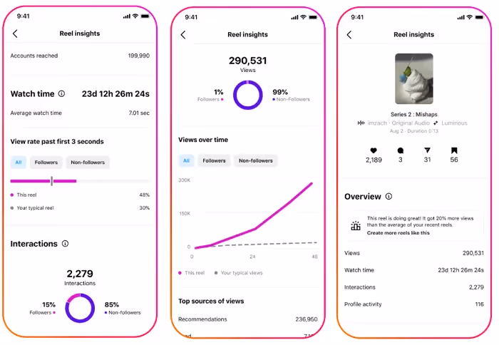 Aangezien kijktijd nu een belangrijke factor is in het Instagram-algoritme, is dit cruciale informatie. Marketingmanagers moeten deze statistieken gebruiken om te analyseren wat werkt en wat niet.