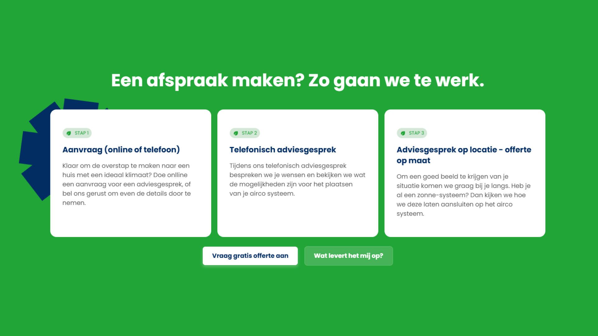 Terwijl verduurzaming, zonnepanelen, thuisbatterijen en andere installaties booming zijn, bleef het digitale deel van hun bedrijf wat achter. Dus gingen wij aan de slag met een compleet nieuwe websiteaanpak.