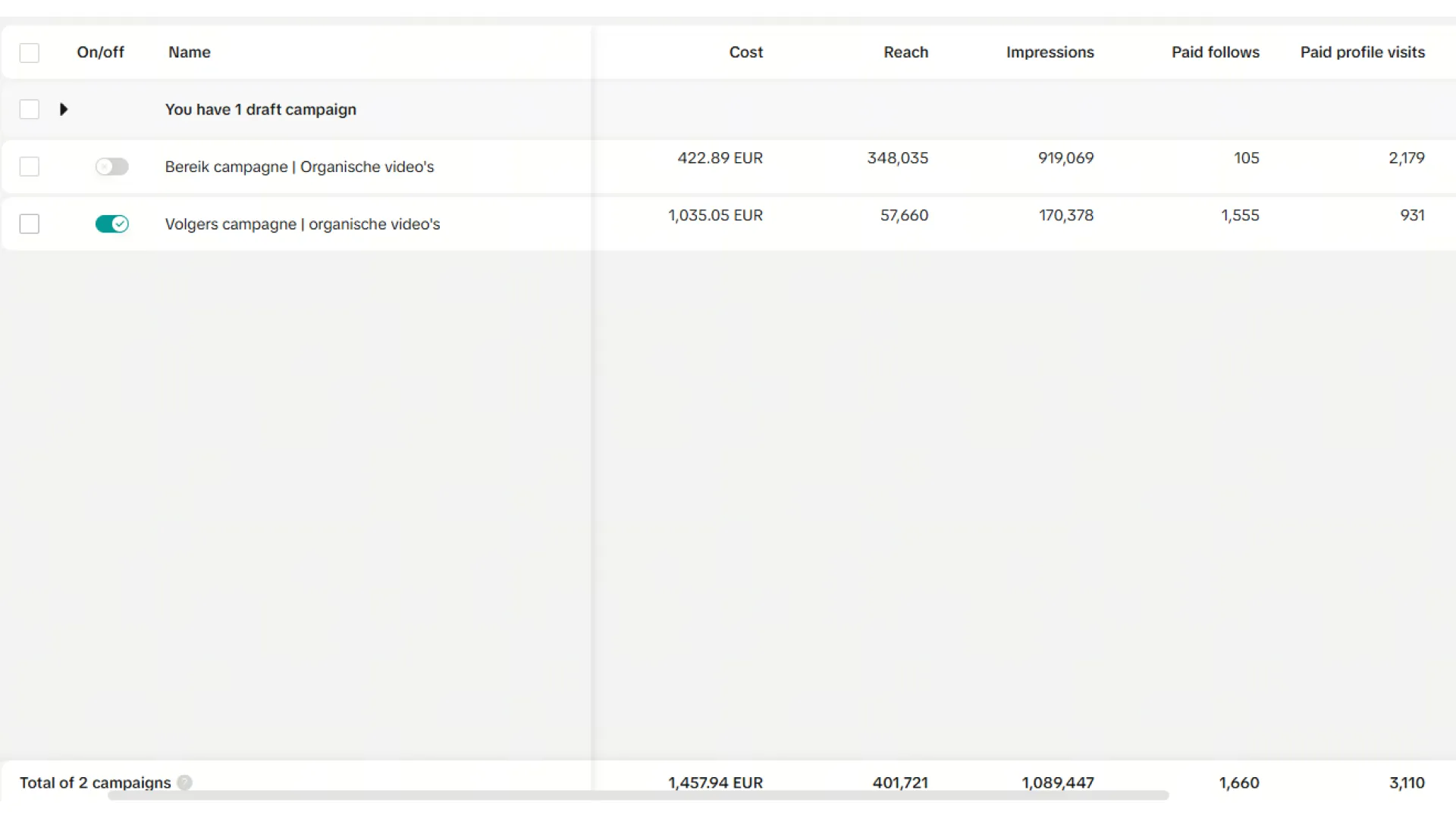 Met een advertentiebudget van € 1.458 op social realiseerden we, dankzij deze combinatie, meer dan 1.089.000 weergaven en een bereik van 401.000 mensen. Via TikTok-campagnes kwamen er 1.660 nieuwe volgers bij en meerdere video’s gingen viraal.