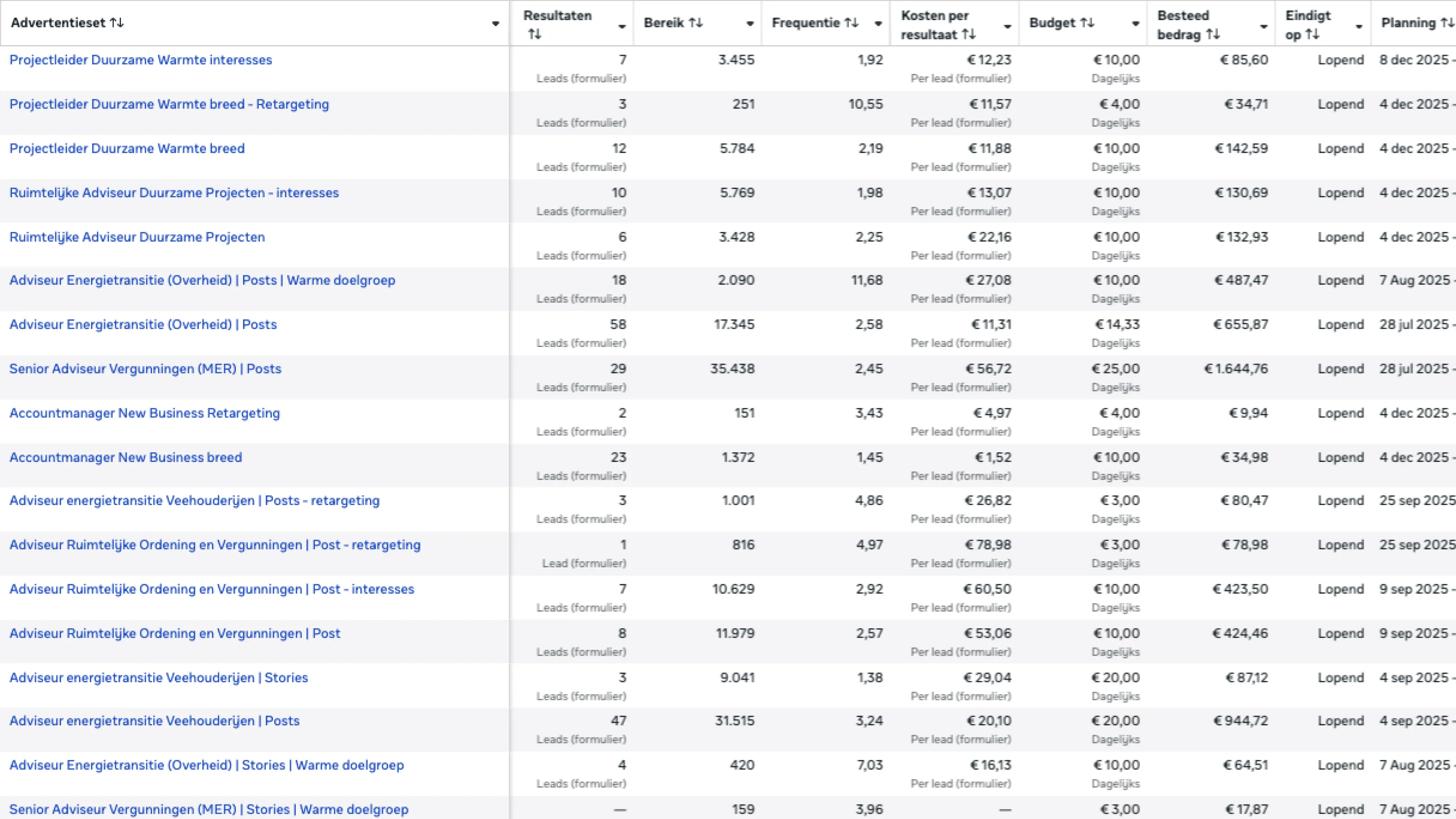 In de campagnes experimenteerden we met verschillende invalshoeken en kwalificatieformulieren. Uit de eerste campagnes kwamen veel leads, maar om de kwaliteit en de tijd die recruiters aan opvolging kwijt waren te verbeteren, stelden we uitgebreidere vragen in de Meta‑formulieren. Zo verhoogden we focus én relevantie, wat leidde tot een substantieel aantal gekwalificeerde kandidaten en gesprekken.