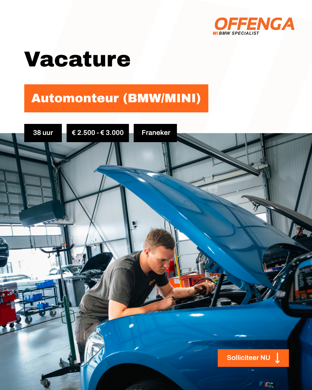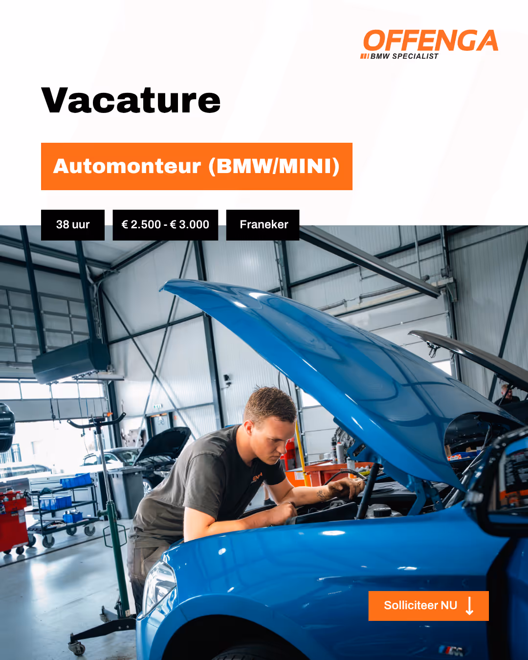 Offenga is dé plek voor BMW‑ en MINI‑rijders in Friesland en ver daarbuiten. Ze combineren jarenlange ervaring met passie voor perfectie, van reparaties tot performance-upgrades. Hun werkplaats zit altijd vol en de vraag blijft groeien. Maar zonder voldoende gekwalificeerde monteurs en ondersteunend personeel liep de planning onder druk en bleven kansen liggen.