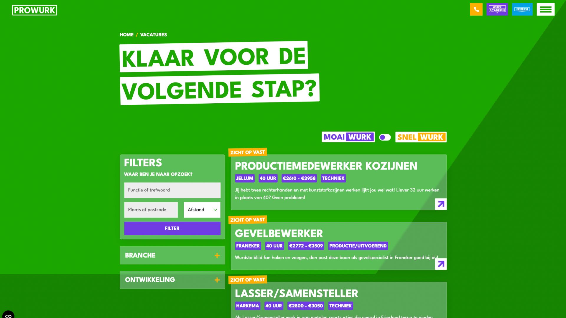 ProWurk wilde uitgroeien tot hét herkenbare uitzendbureau van Noord-Nederland, met een sterke online identiteit en een constant aanbod aan kwalitatieve kandidaten. Ze zochten een schaalbaar systeem waarmee vacatures automatisch gevuld werden, de zichtbaarheid toenam en de groei van nieuwe vestigingen digitaal ondersteund werd.