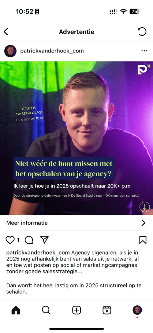 Patrickvanderhoek.com is de consultancy agency voor agencies met 10-30K omzet. Hier adviseer ik strategisch hoe deze agencies effectief opschalen naar 20 tot 30K+ maanden door oneerlijk concurrentievoordeel te creëren.
